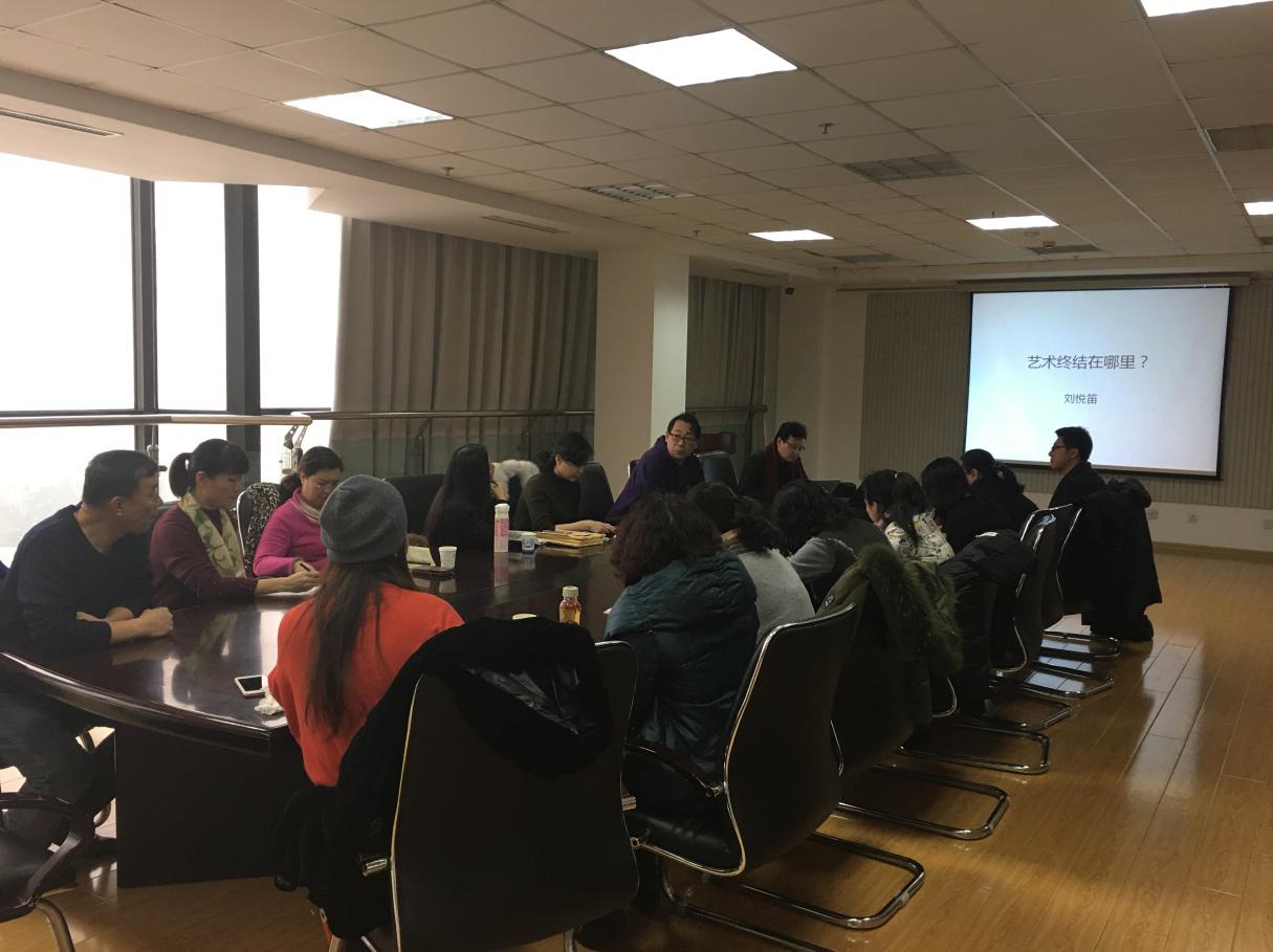12月10日上午,中国社会科学院哲学所研究员、中华全国美学学会副秘书长刘悦笛应邀在主楼912会议室为艺术学院师生带来一场“艺术终结在哪里”的专题讲座。讲座由艺术学院院长张燕楠教授主持,宋伟教授以及20多位教师和我院研究生到场聆听。