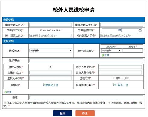 人员申请进校须提供进校人姓名、单位名称、手机号码、