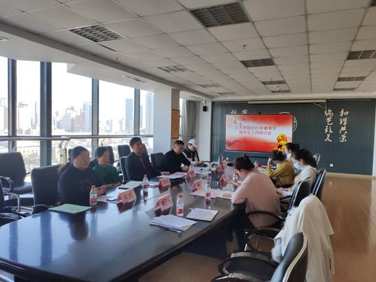 3月1日上午,艺术学院在主楼912室召开2022年春季学期学生工作研讨会。艺术学院党委书记张哲,党委副书记、副院长[兼]韩营颖,全体专兼职学生工作干部参加会议。