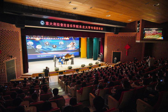 5月18日,意大利拉奎拉音乐学院东北大学专场音乐会在浑南校区图书馆报告厅举行。意大利拉奎拉音乐学院(Conservatorio Alfredo Casella di L’aquila)院长克劳迪奥・迪・马斯曼托尼奥(Claudio di Massimantonio)、“中意优才计划”中方负责人中国音乐学院教授张哲、艺术学院院长张燕楠出席音乐会并致辞,全校师生500余人观看了演出活动。