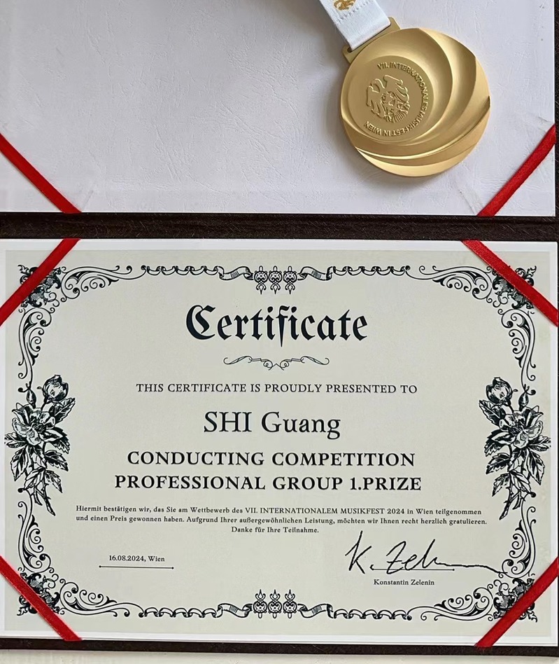 8月12日至17日,第七届维也纳国际音乐节指挥比赛(Wettbewerb des VII. INTERNATIONALEM MUSIKFEST 2024 in Wien)在维也纳举行。经过线上初赛、复赛和决赛的激烈角逐,东北大学艺术学院副教授石光一路过关斩将,荣获指挥比赛专业组金奖第一名的佳绩。