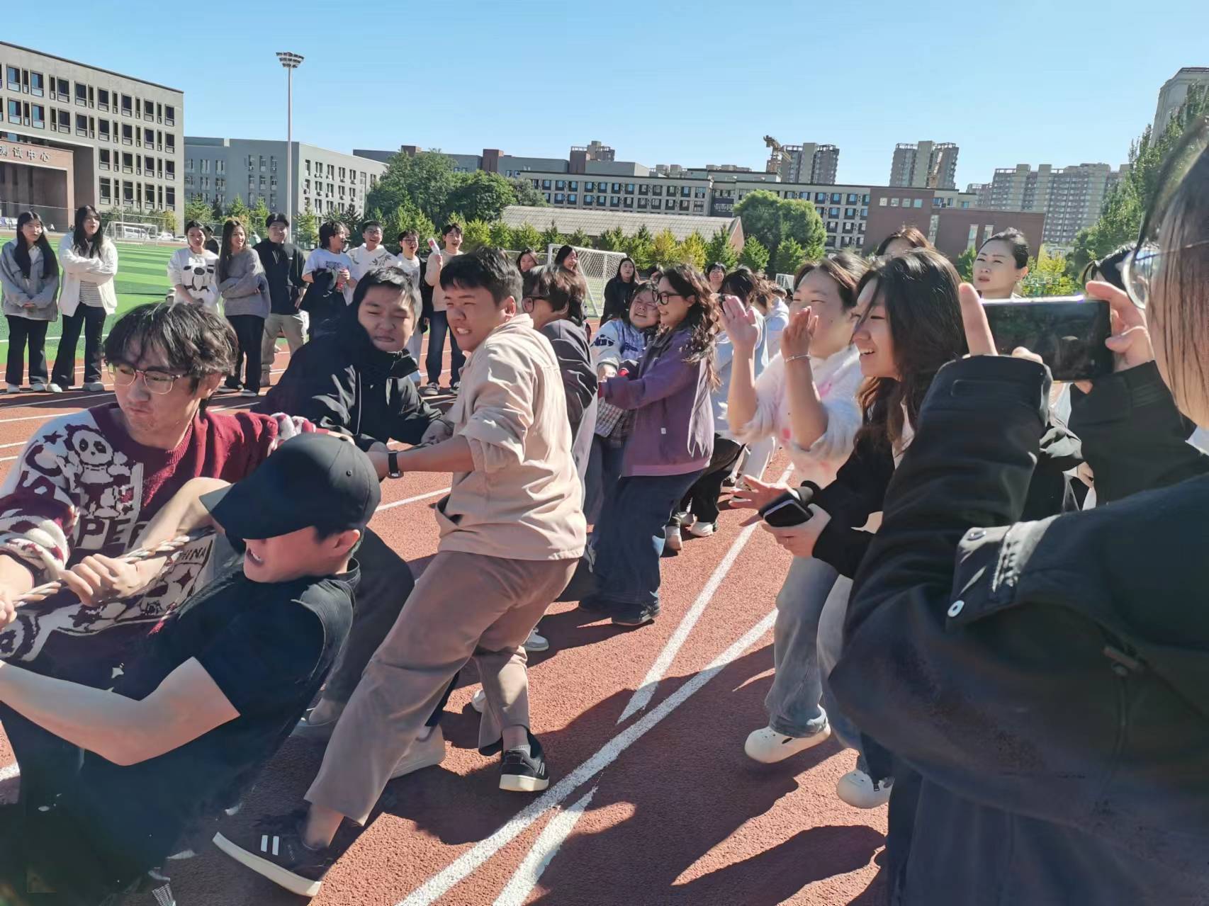 近日,艺术学院“运动1小时”金秋运动季系列活动启动仪式暨拔河比赛在五五运动场举行。艺术学院本科生班导师、辅导员以及2022级和2023级本科生组成8支队伍参加了此次活动。经过激烈角逐,由视觉传达设计2201和环境艺术设计2201组成的师生代表队以及音乐表演2201和2202师生代表队获得冠军。