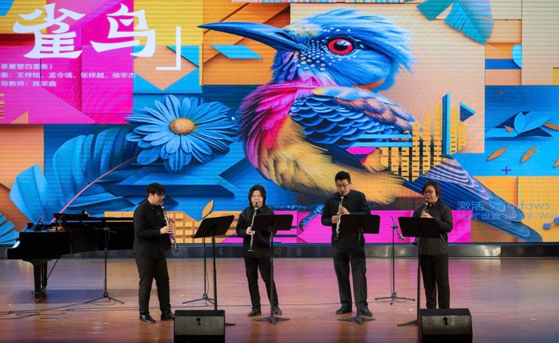 本场音乐会由美育研究中心精心组织,作为“美育之约”系列活动的重要延续,特别面向双创学院师生呈现,以多元艺术搭建美育与创新教育的交流桥梁。音乐会汇集双钢琴、二胡、声乐、管乐、舞蹈等多种艺术形式旨在为观众呈现一场丰富多彩、层次分明的视听盛宴。管乐铿锵昂扬、舞蹈灵动优美,各类节目交相辉映,充分展现了艺术学院扎实的实践教学成果。孙博老师指导的二胡齐奏与重奏婉转悠扬,在弓弦之间尽显民族器乐的独特韵味与文化魅力。卜冠一老师、冯宏老师指导的声乐作品情感真挚、歌声饱满,用富有感染力的演唱直抵人心。