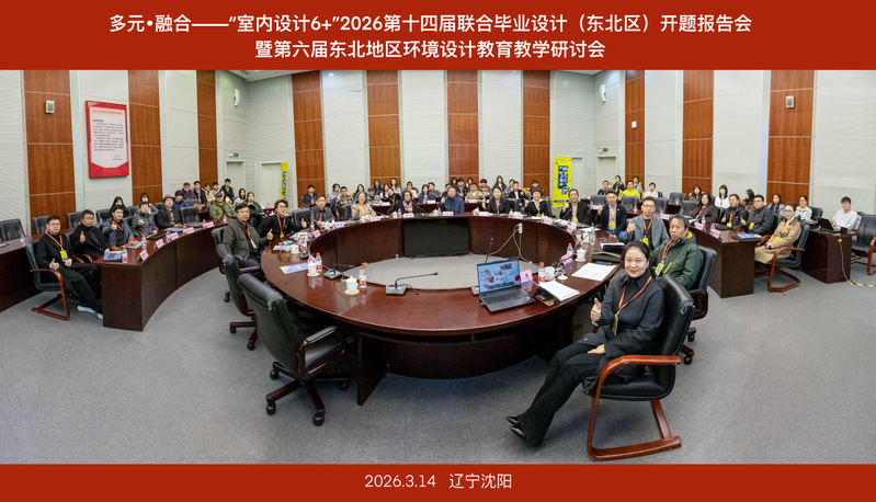 2026年3月14日至15日,“室内设计6+”2026第十四届联合毕业设计(东北区)开题报告会暨第六届东北地区环境设计教育教学研讨会在东北大学顺利举办。本次活动由中国建筑学会室内设计分会、中国美术家协会环境设计艺术委员会、东北大学主办,瑞昌市幻影灰石材有限公司、鲁迅美术学院、沈阳建筑大学、《IID室内设计》沈阳站协办,东北大学艺术学院承办,以“多元•融合”为主题,汇聚东北大学、大连理工大学、东北师范大学、东北林业大学、吉林建筑大学、内蒙古工业大学、吉林艺术学院、辽宁工业大学、东北农业大学等9所高校的师生代表、行业专家学者共话环境设计教育创新与行业发展,为区域设计人才培养和学科建设搭建优质交流平台。