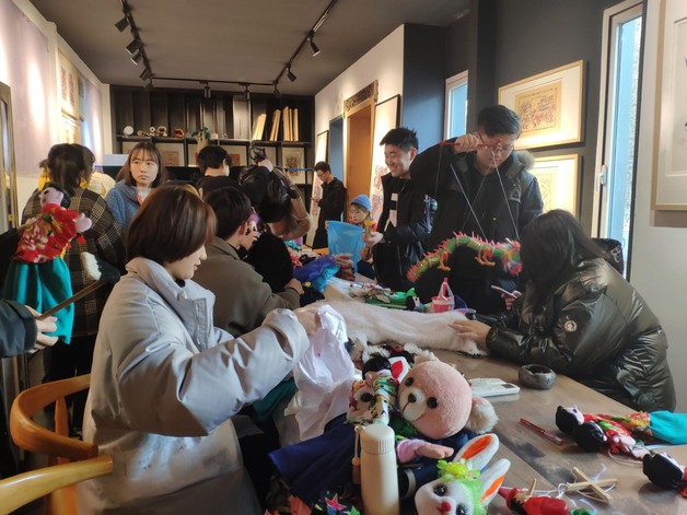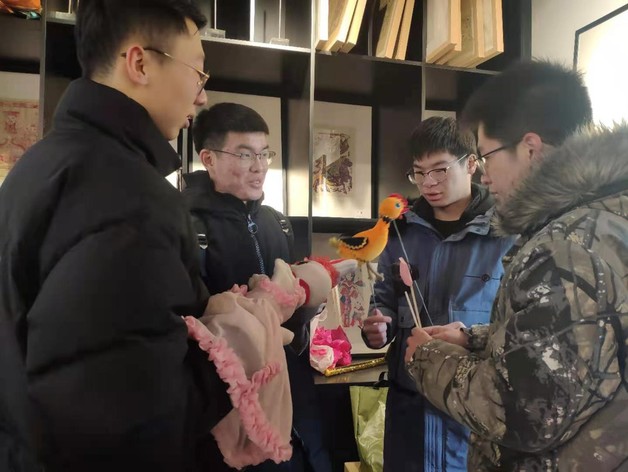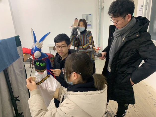 木偶表演工作坊的同学商讨剧本,编排剧目